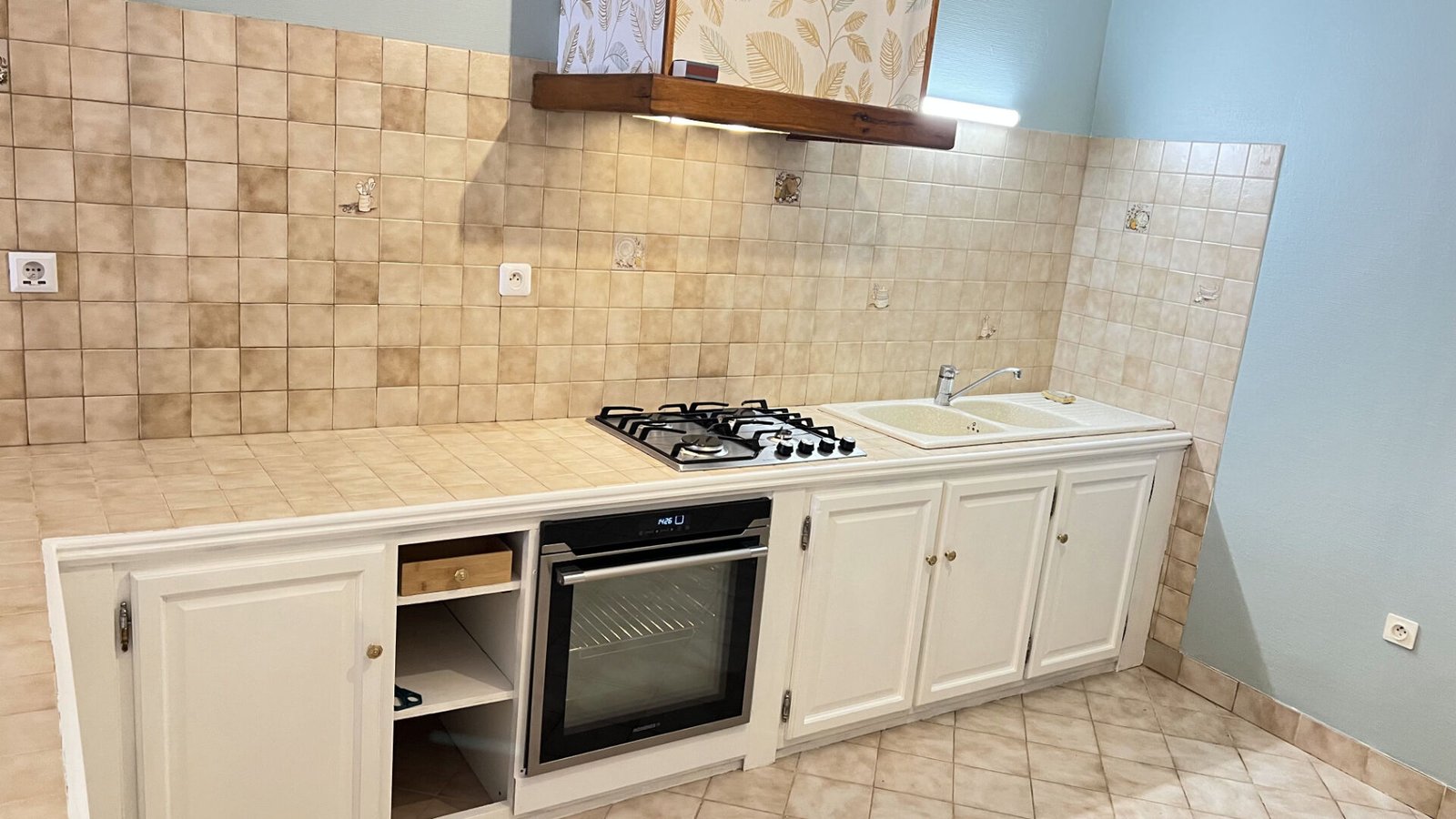 L’entrée s’ouvre directement sur une pièce de vie lumineuse de 34 m2 comprenant une cuisine ouverte équipée de nombreux rangements, d’une plaque de cuisson et d’une hotte. Le rez-de-chaussée est complété par un WC séparé ainsi qu’un cellier buanderie pratique donnant sur une ruelle.