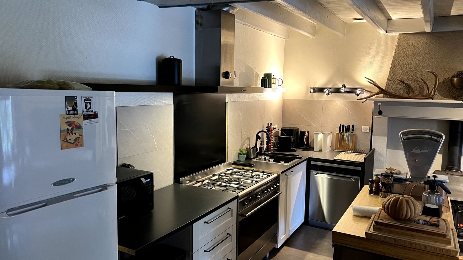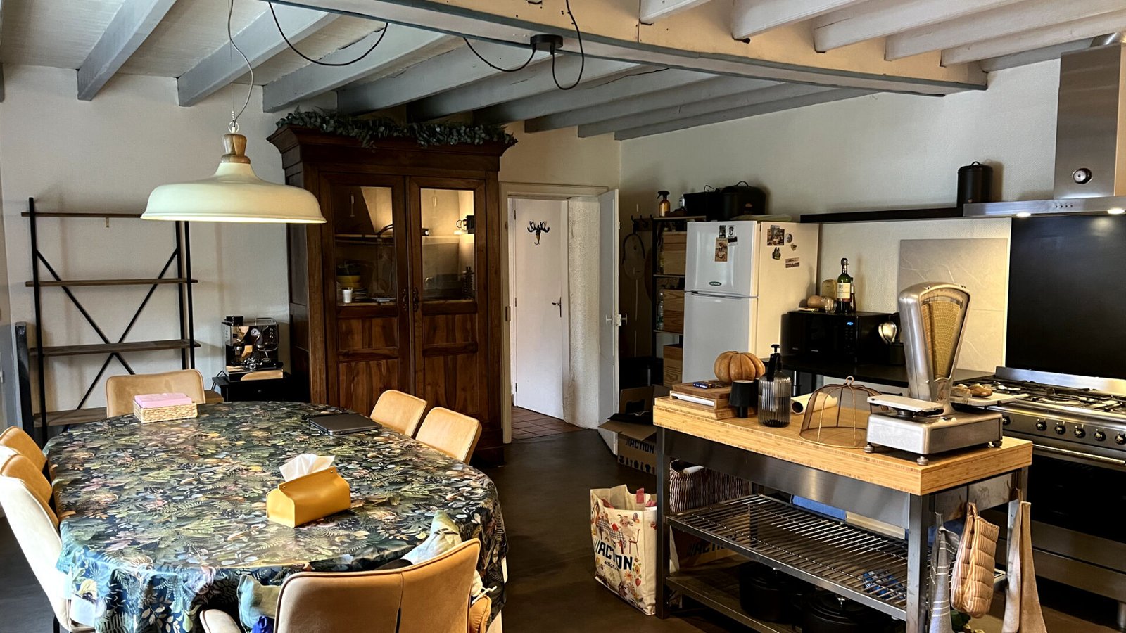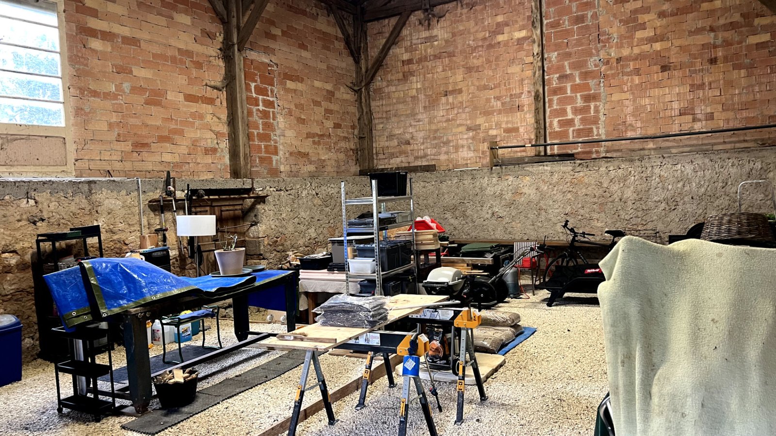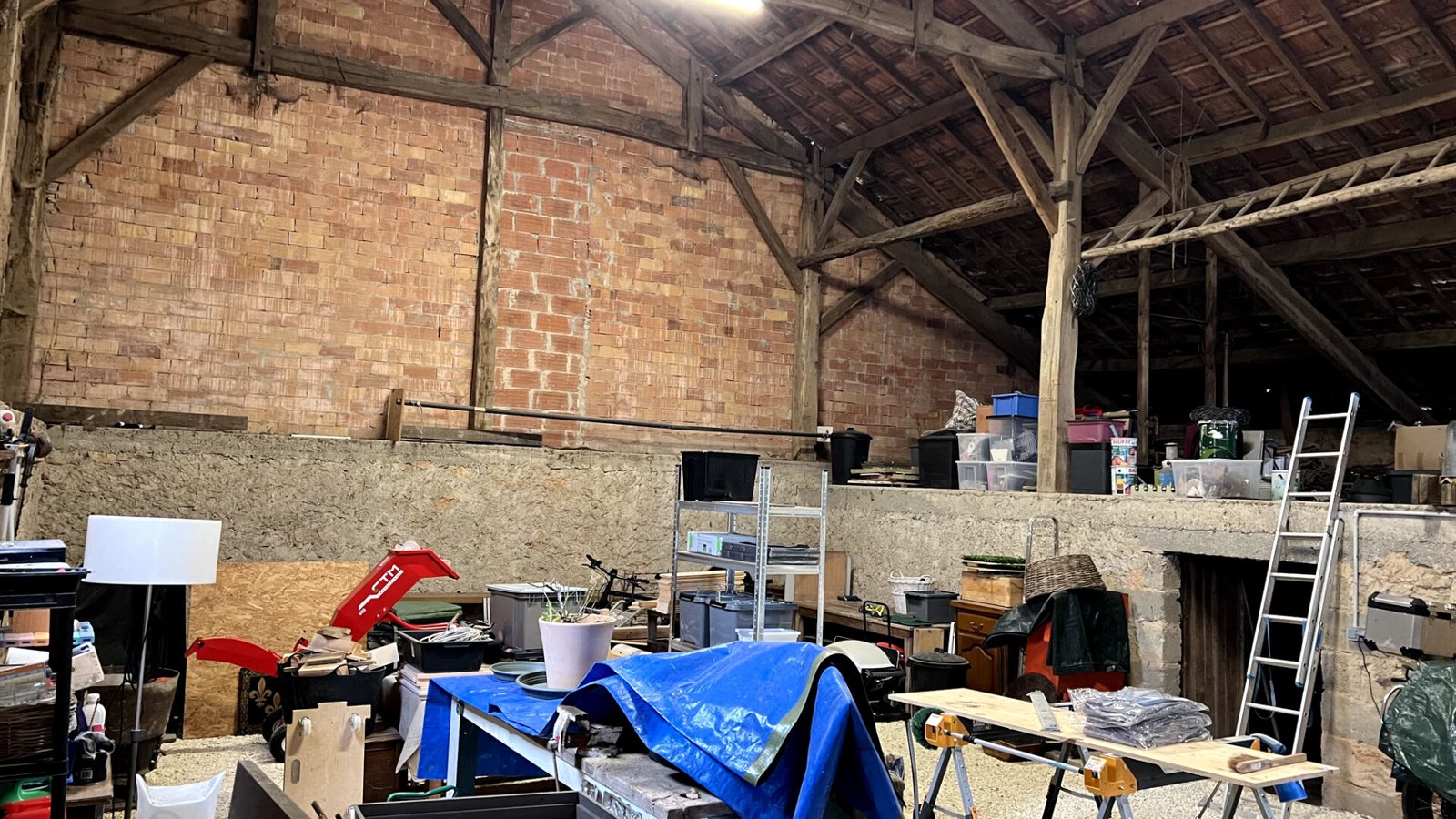 L’extérieur est un véritable atout pour ce bien avec un terrain de 1400 m2. Les dépendances incluent un très grand garage ainsi qu’un cellier et un espace dédié au stockage du bois. Un abri spécifique pour engins agricoles complète l’ensemble, offrant de multiples possibilités pour des projets artisanaux ou de jardinage.