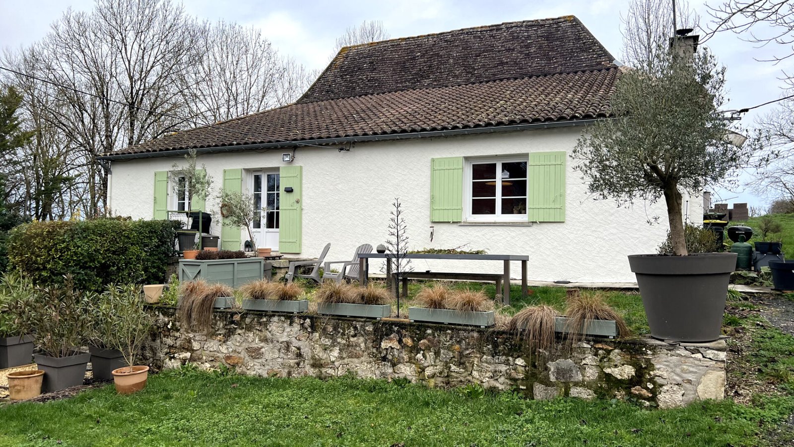 Cette authentique maison en pierre de type périgourdine offre un cadre de vie paisible alliant le caractère de l’ancien au confort fonctionnel. L’habitation principale s’ouvre sur une entrée desservant une cuisine aménagée chaleureuse de 31 m2, agrémentée d’un poêle à bois. Le séjour spacieux dispose d’un poêle à granulés. L’espace nuit se compose de deux chambres confortables de 17 m2 et 20m2 dont une avec climatisation réversible, une salle de bains complète comprenant à la fois une baignoire et une douche. Un WC séparé ainsi qu’un espace buanderie optimisent l’organisation quotidienne. Une cave située sous une partie de la maison apporte une solution de stockage supplémentaire pour vos conserves ou votre vin.